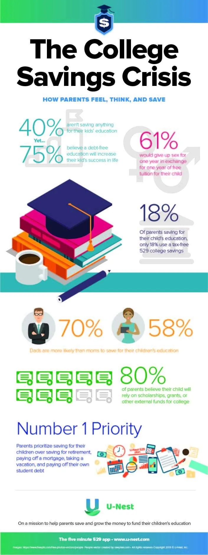 "We all know saving for college is hard - it's a huge expense, which is why student debt is out of control (currently at $1.5 trillion) and still growing. This data shows how extreme the problem has become," said Ksenia Yudina, Founder and CEO of U-Nest. "The fact that parents are willing to sacrifice their own well-being to reduce the cost of college puts into perspective how large this crisis is, and the toll it's taking on families across the country."